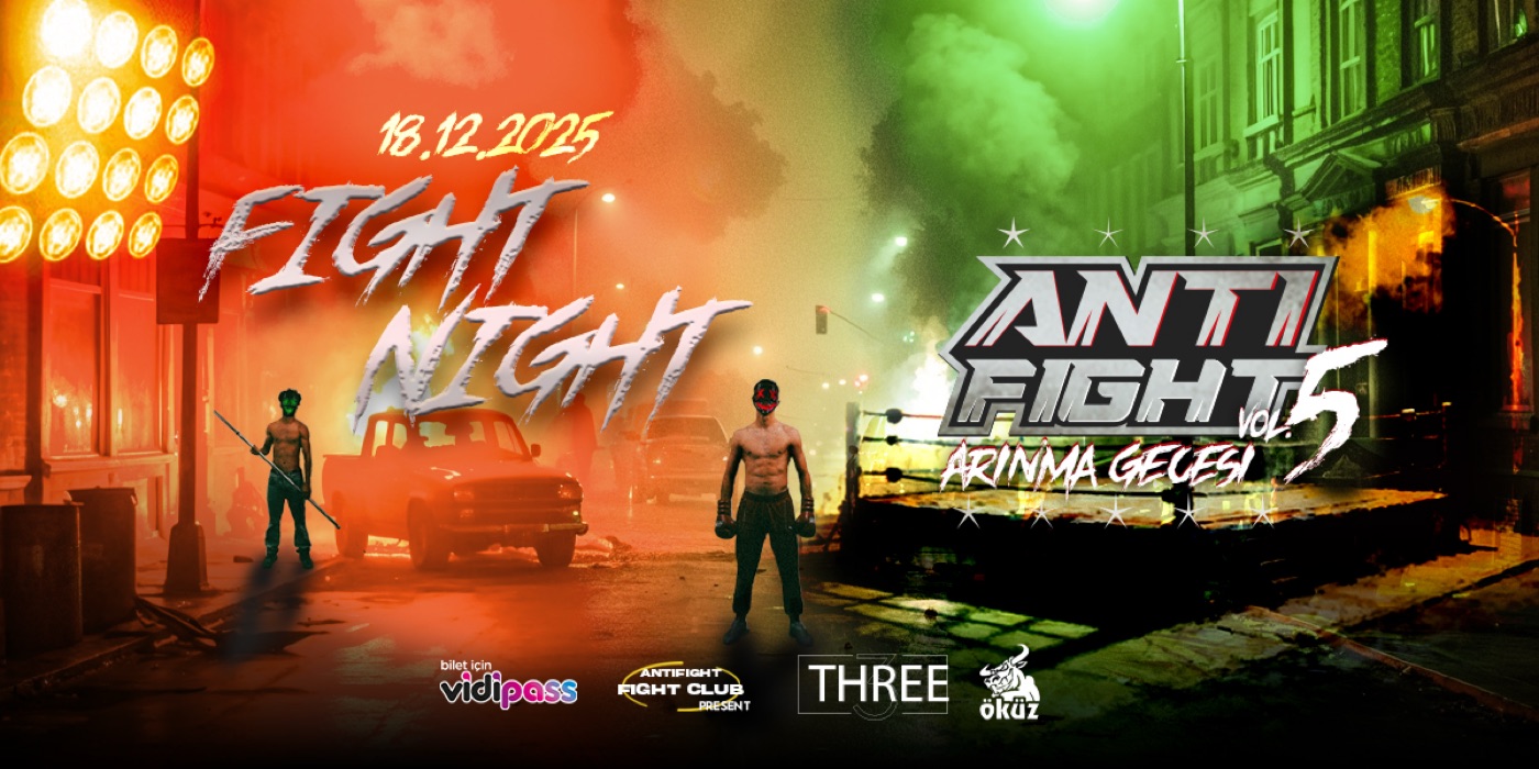 Three’de kurulacak bir ring üstünde yer alacak birbirinden heyecanlı 6 mücadele ve bu mücadelelere eşlik edecek bir DJ performansı ile gecenin nabzı bir an olsun düşmeyecek.