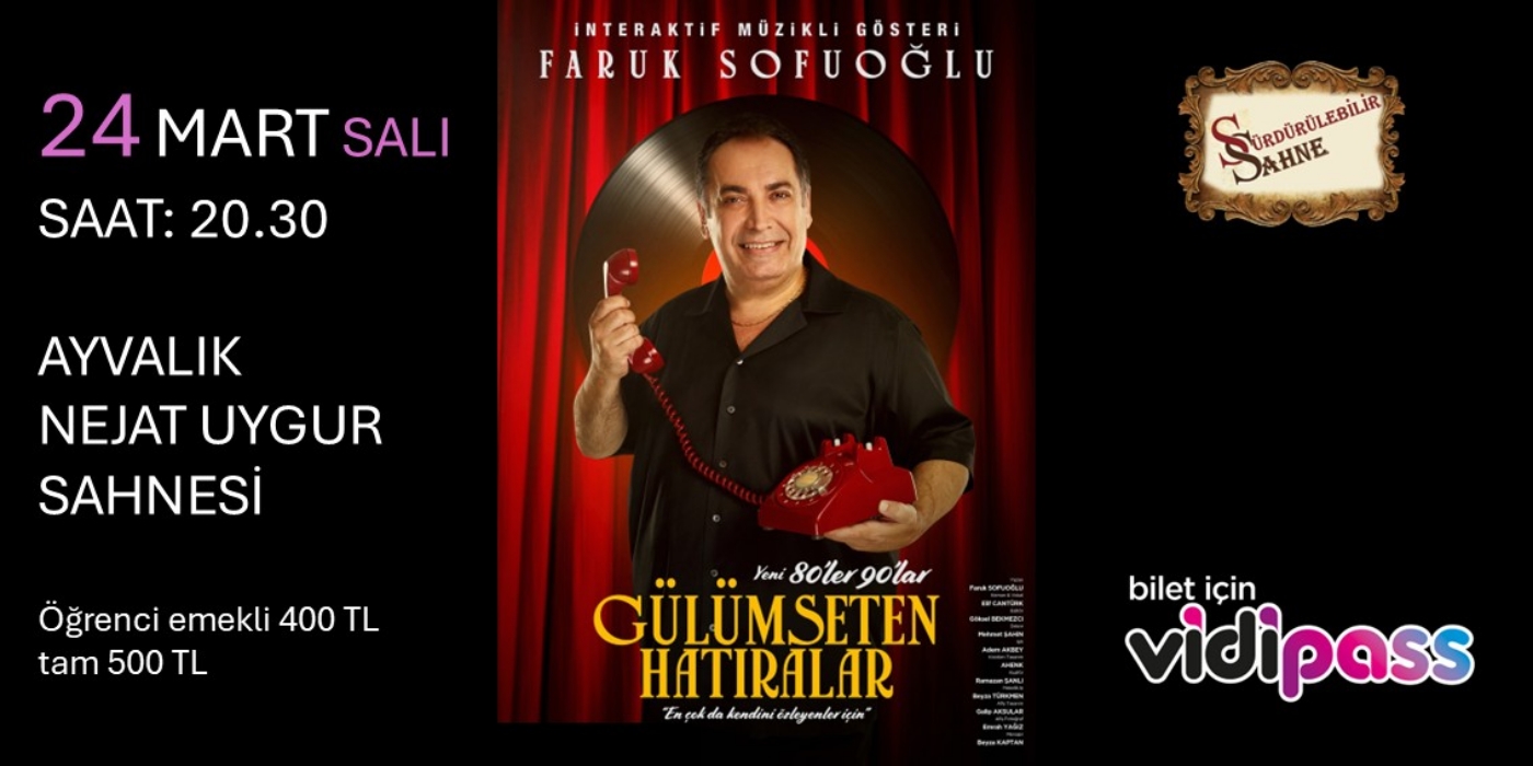Ekranlardan tanıdığımız Faruk Sofuoğlu’nun sahne aldığı; sürpriz performansları anlatıları, Evrim Kırcı’nın seslendirdiği nostalji şarkıları ile geçmişten günümüze değin dokularımıza işleyen ortak anılarımızla bezenmiş neşesi bol, kahkahası çok, keyifi uzun bir eğlence proğramı…